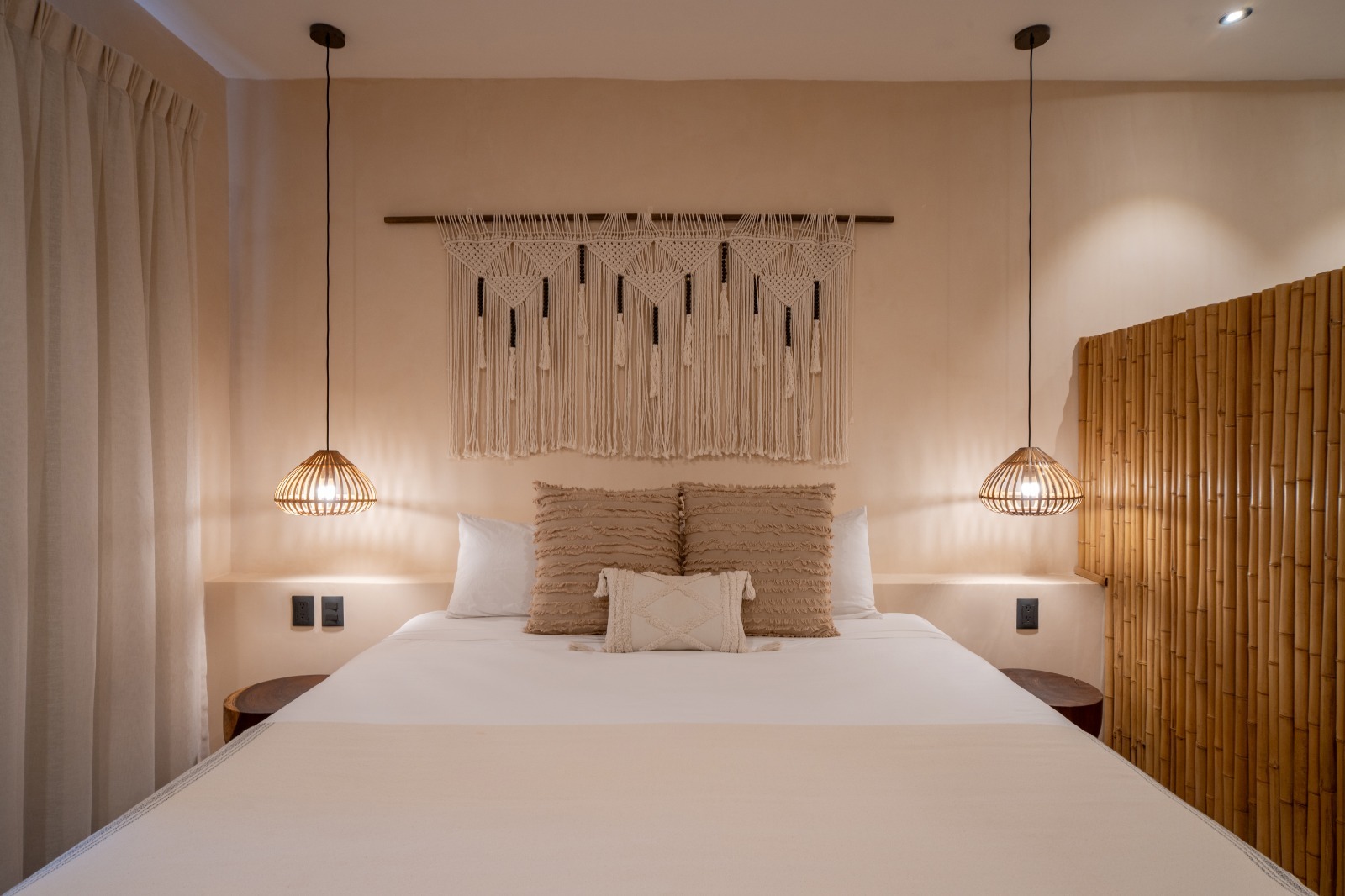 Características destacadas: ✔ Espacio de 28m² con diseño natural y acogedor ✔ Cama King size para máximo confort ✔ Privacidad y tranquilidad en un entorno tropical Amenidades incluidas: WiFi gratuito, aire acondicionado, caja de seguridad, baño privado, minibar, secador de pelo, cafetera, TV, toalla de playa y pantuflas.
